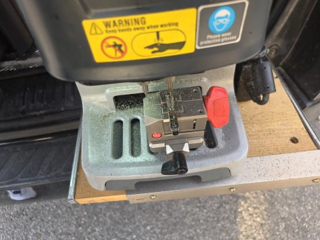 자동 키 절삭기에 새 블랭크 키를