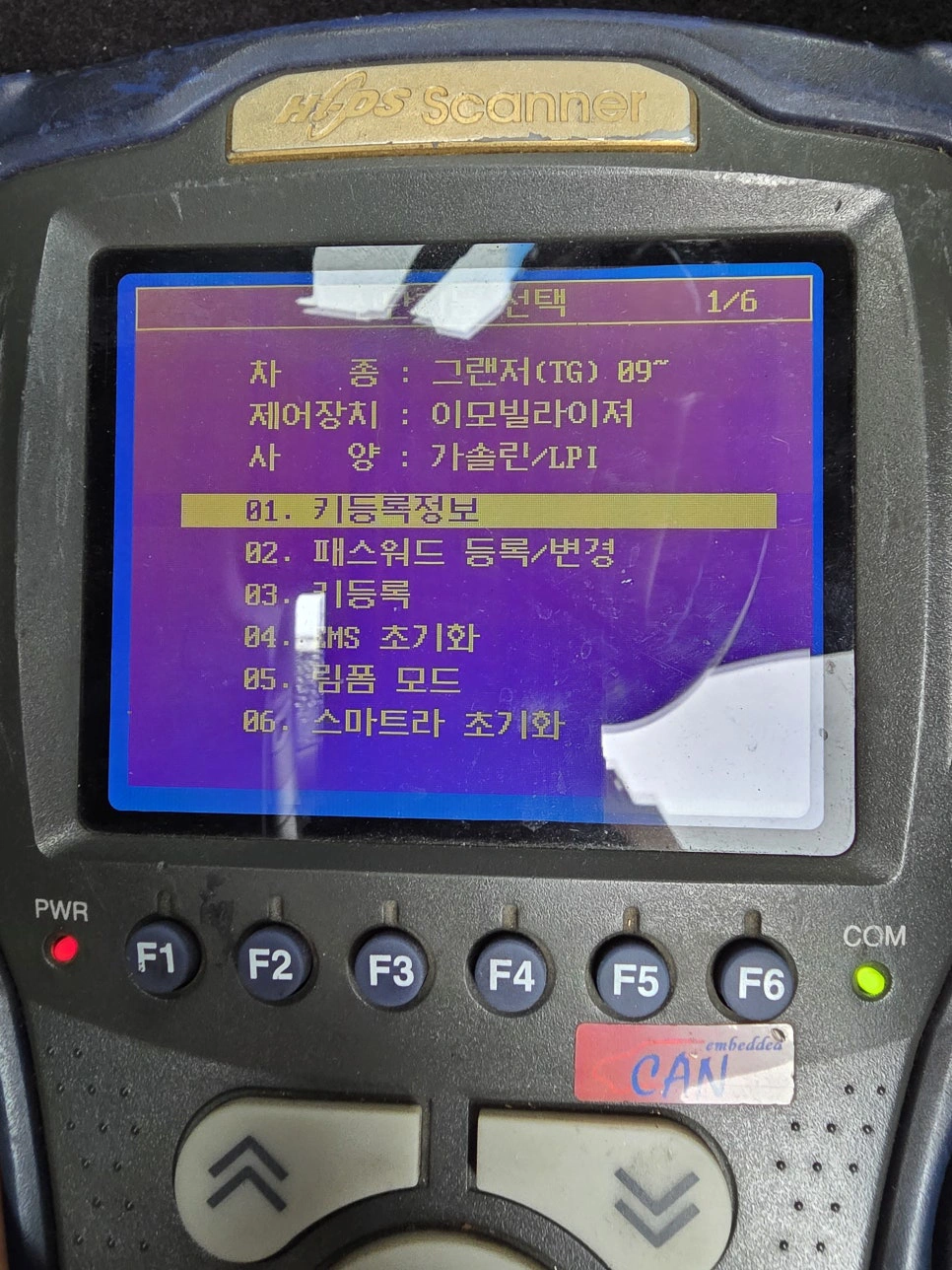 차종을 선택하고, 이모빌라이저 메뉴로 들어가