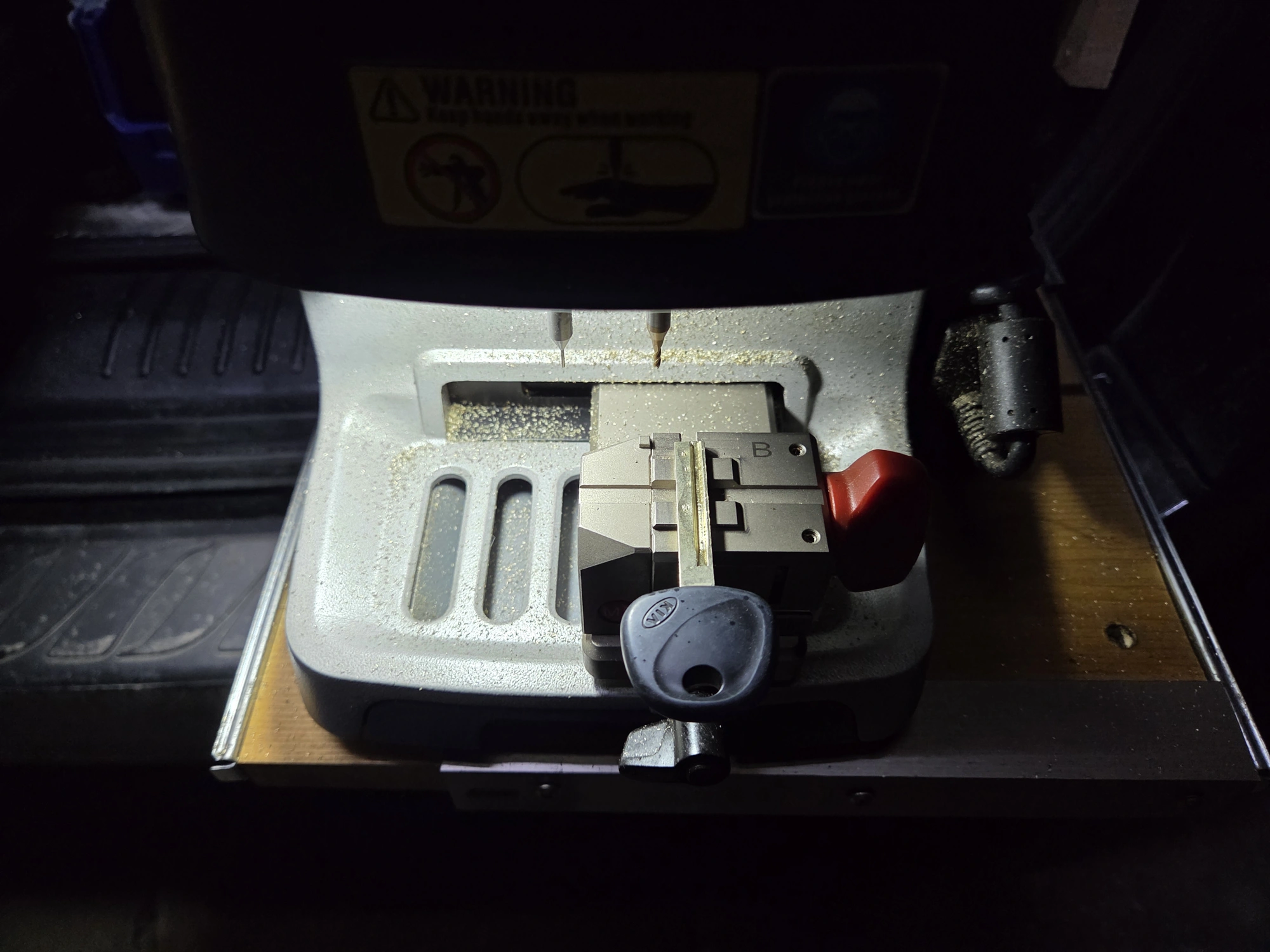 사진처럼 컷팅 장비에 키를 고정한 뒤